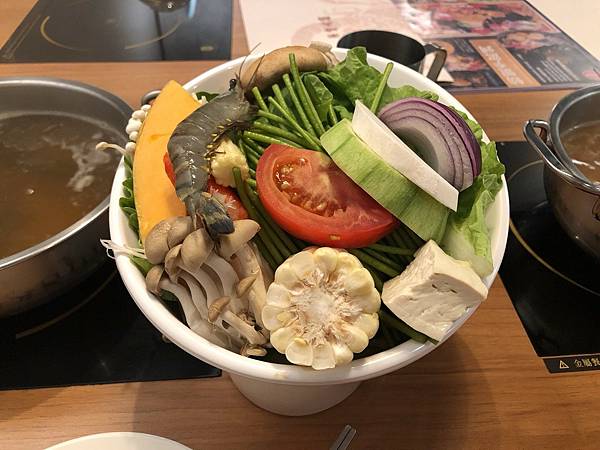 都以原型蔬菜為主,主要由季節時蔬及菇類做搭配,有高麗菜、水蓮、米筍、玉米、南瓜、番茄...等等,整齊的擺盤及配色光看著就很有食慾。